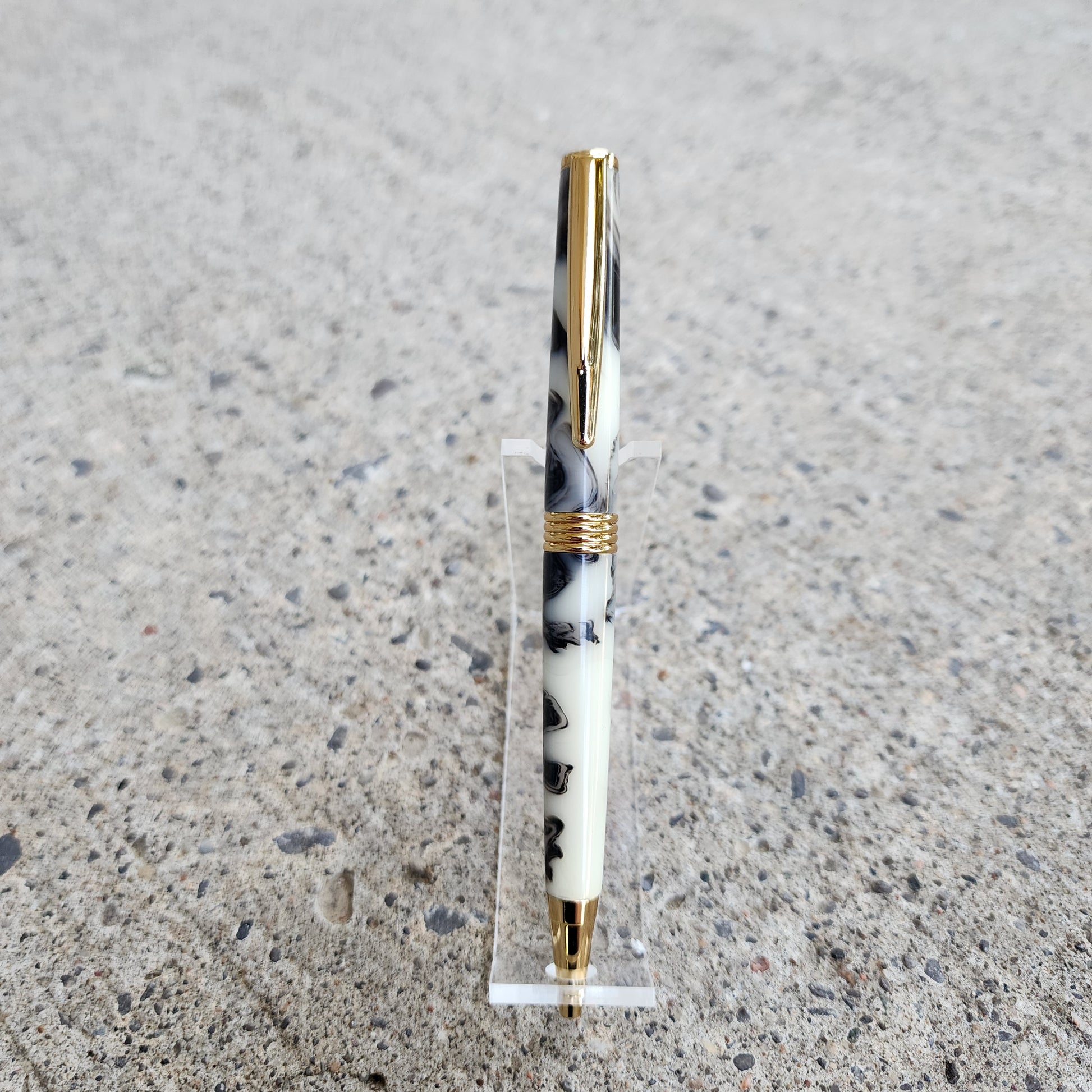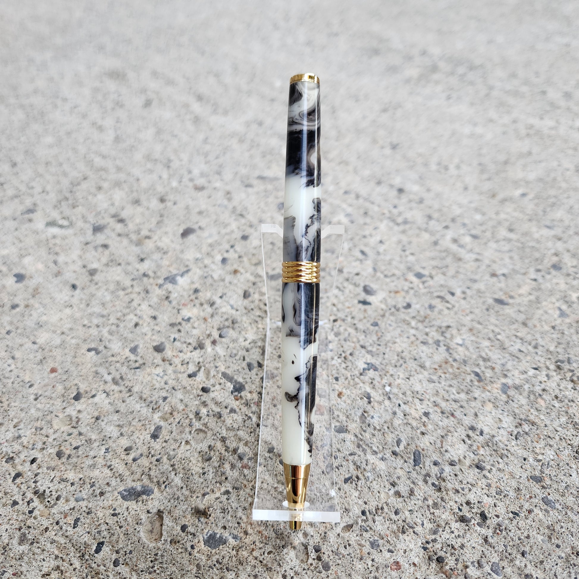 Custom Hand Turned Ballpoint Pen - Black/White Smoke