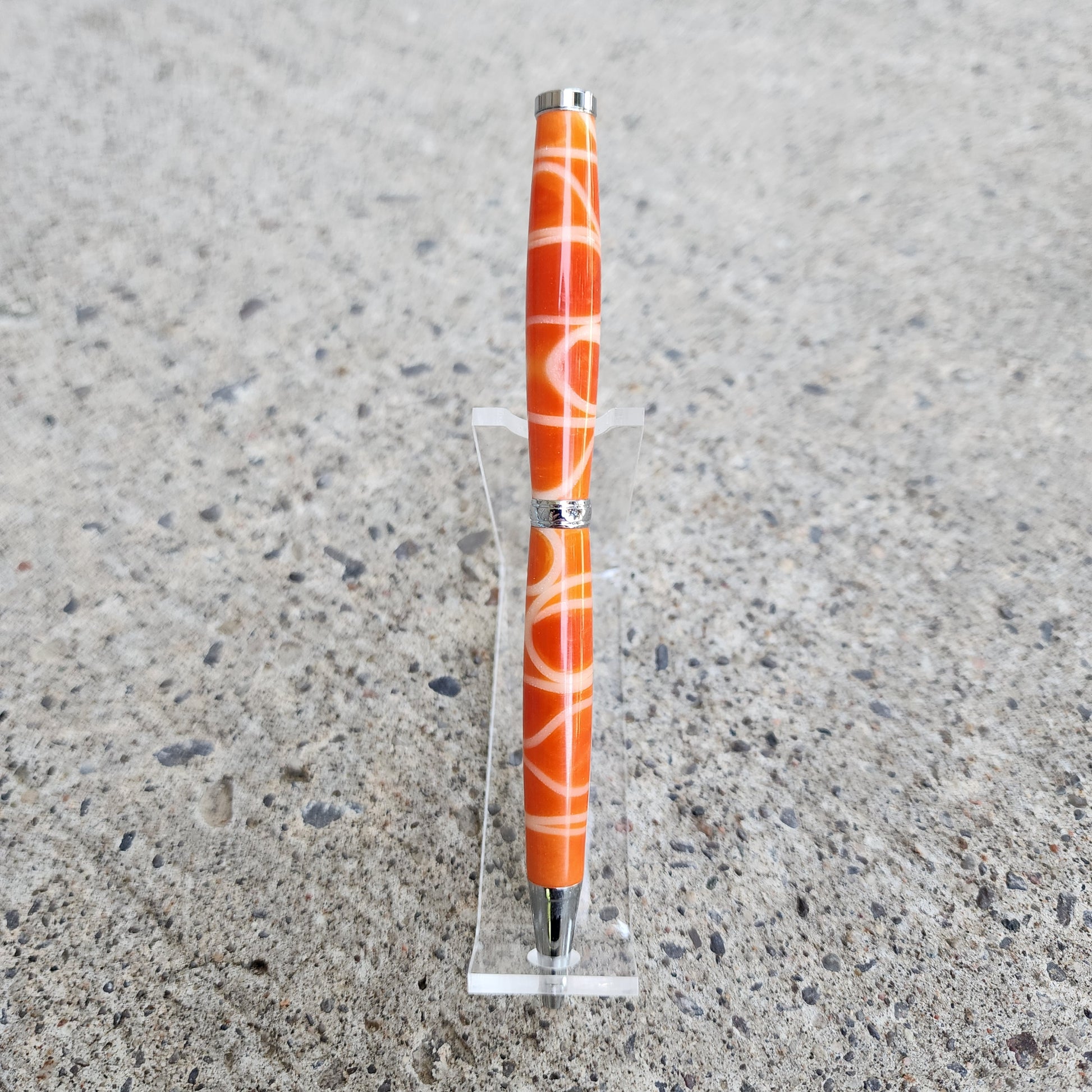 Custom Hand Turned Ballpoint Pen - Orange/White Swirl
