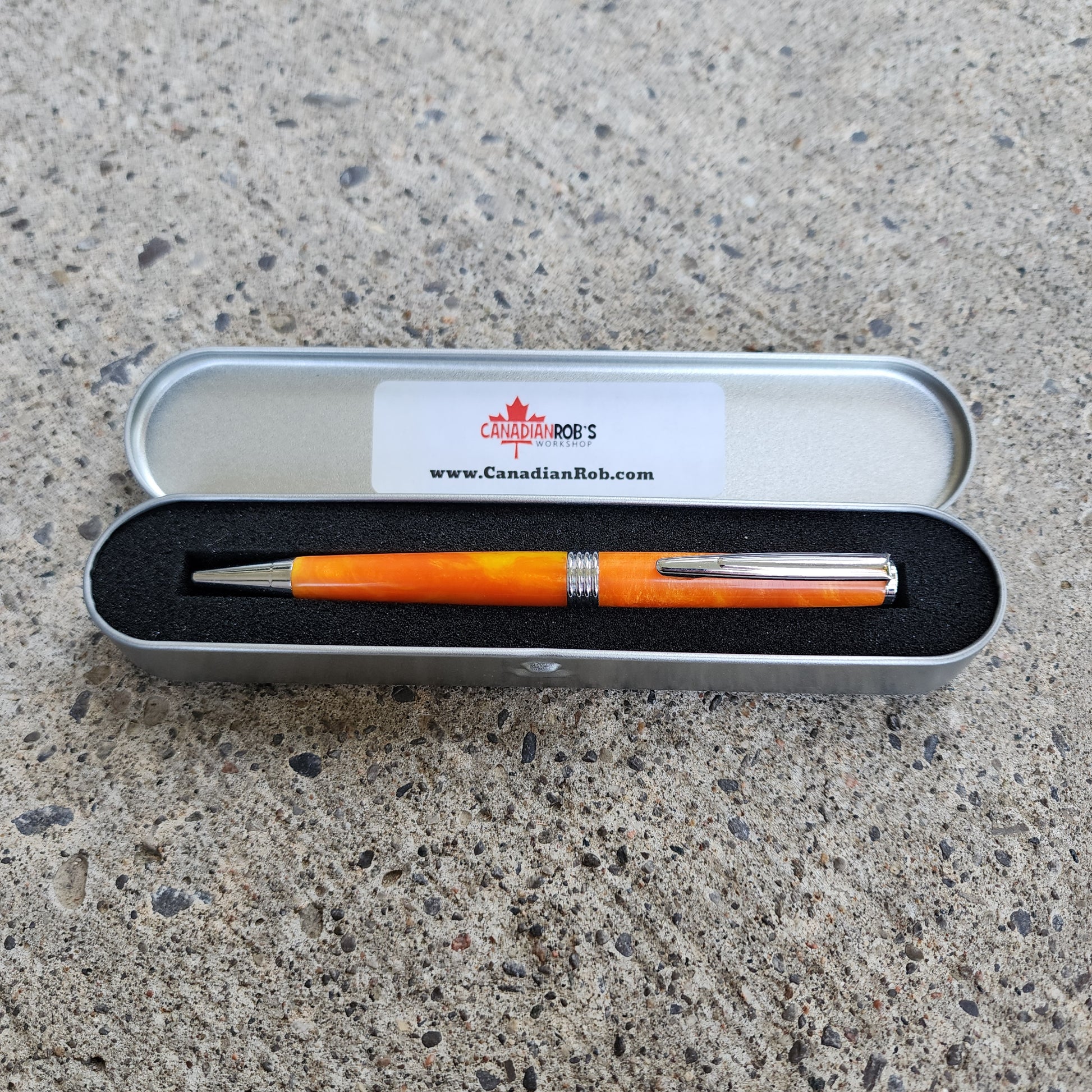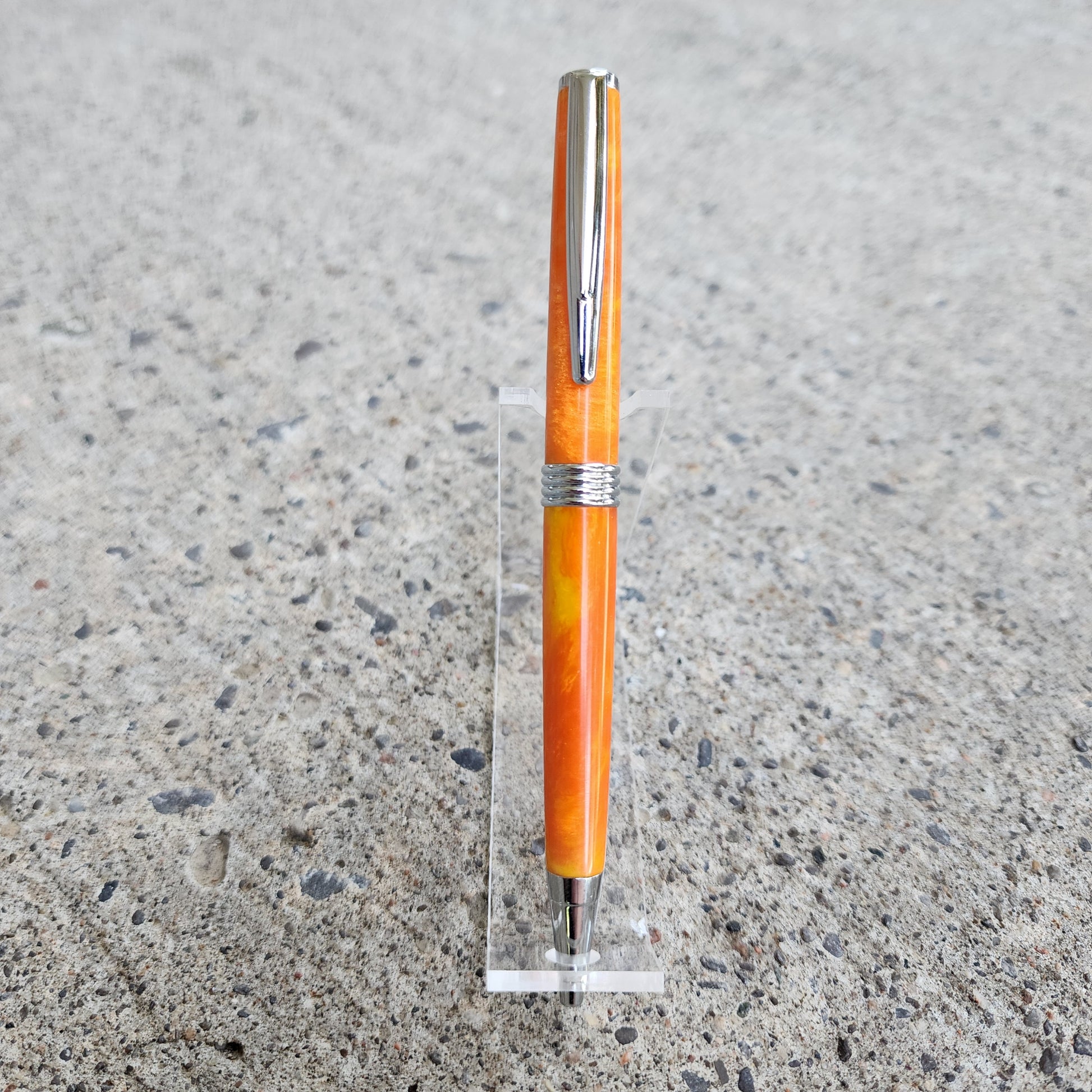Custom Hand Turned Ballpoint Pen - Orange/Yellow