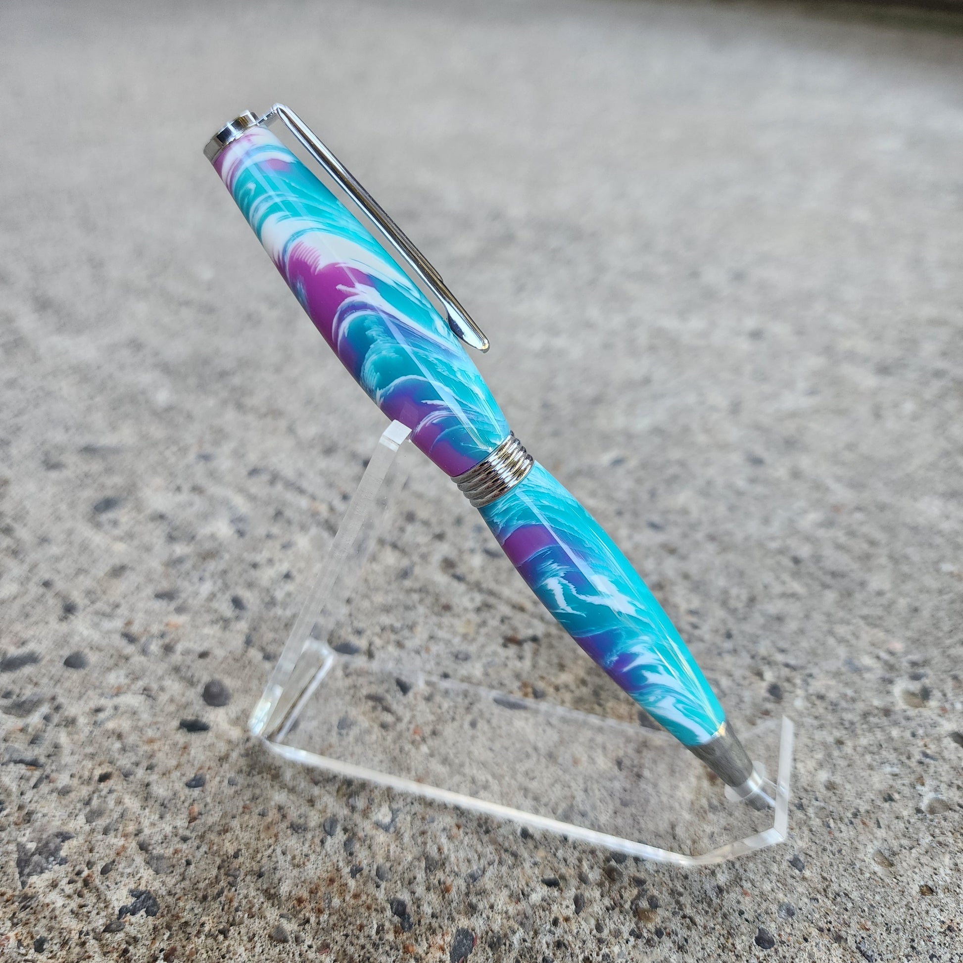 Custom Hand Turned Ballpoint Pen - Teal/White/Purple