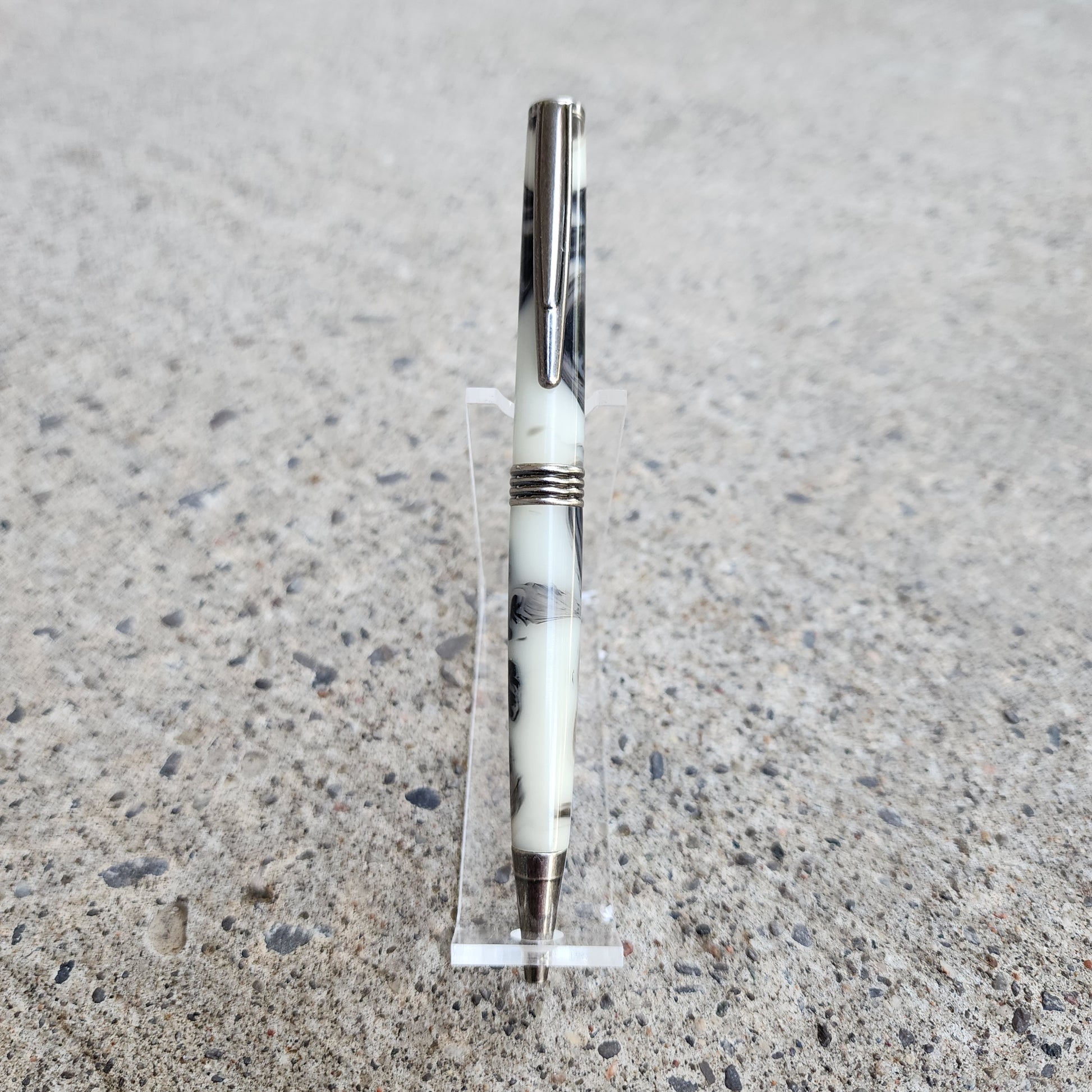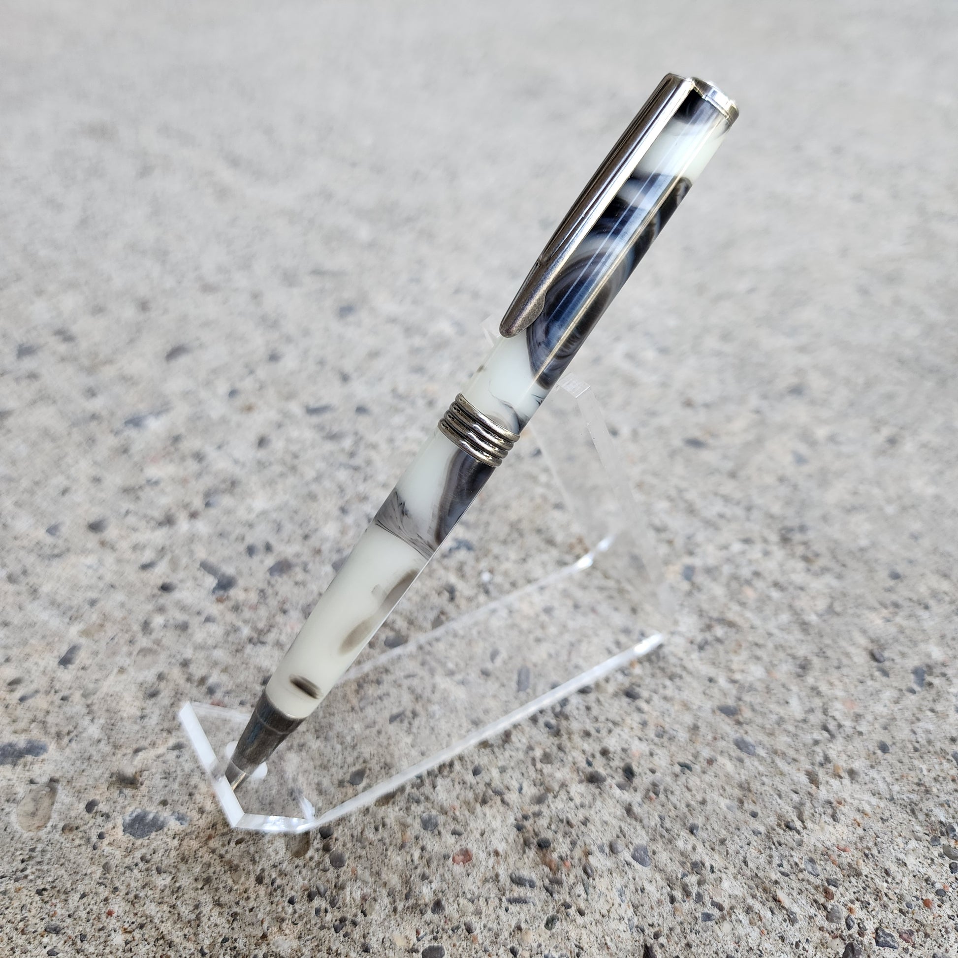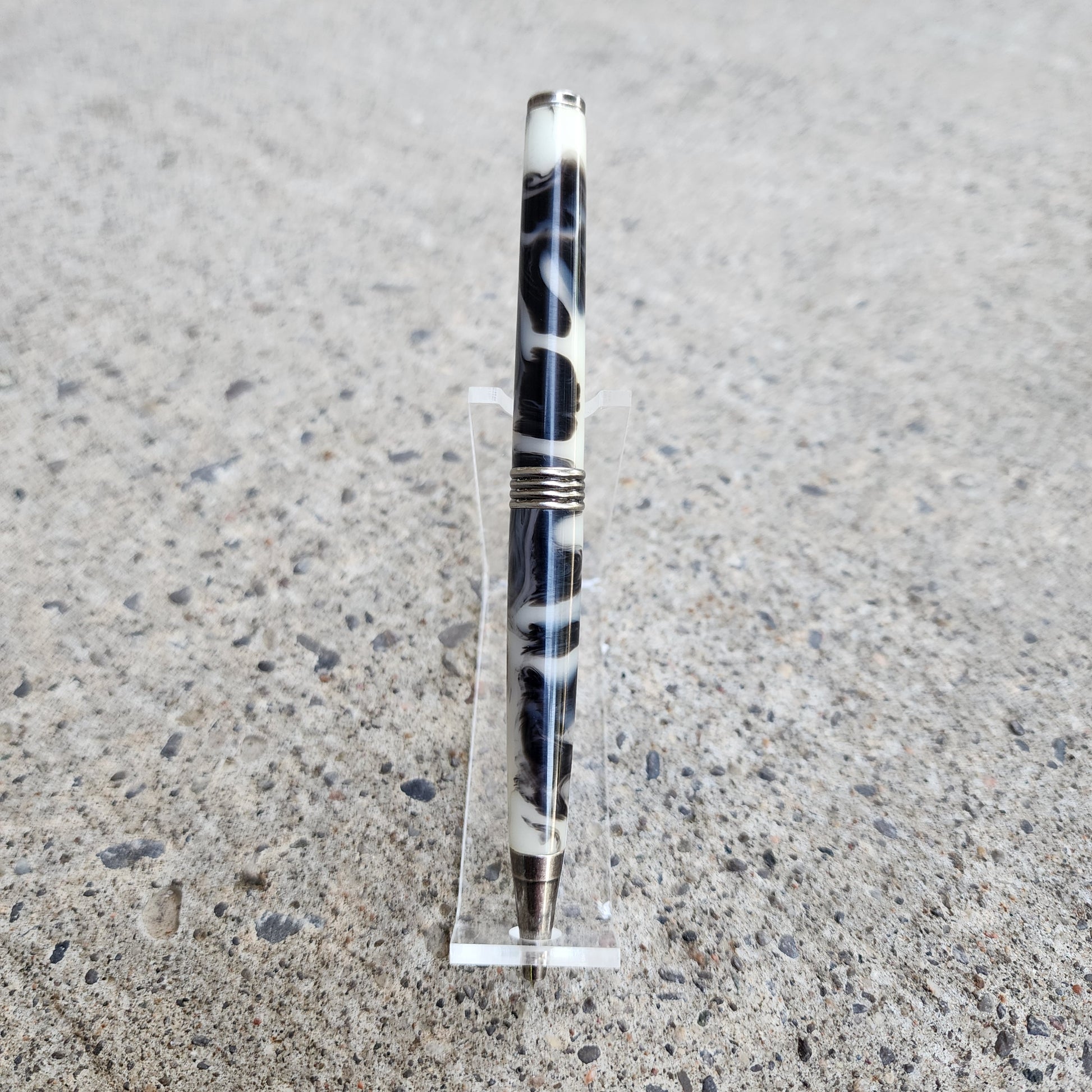Custom Hand Turned Ballpoint Pen - White/Black Smoke 2